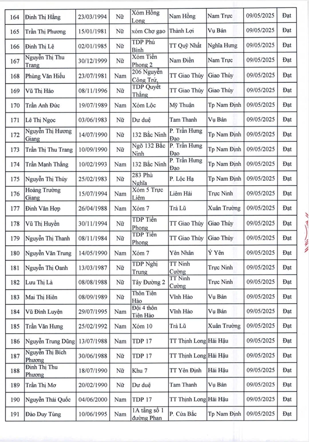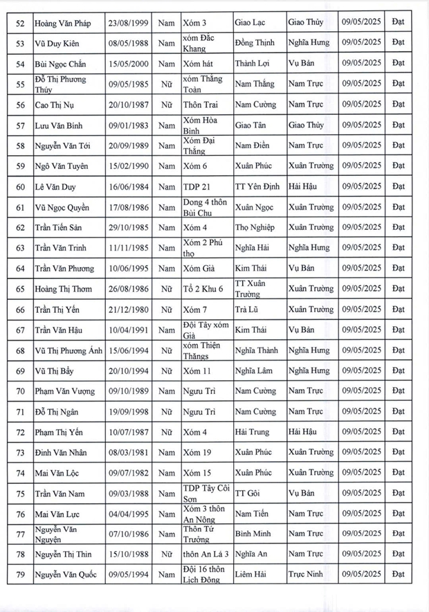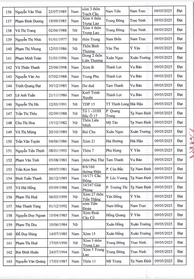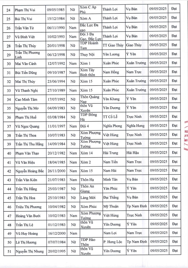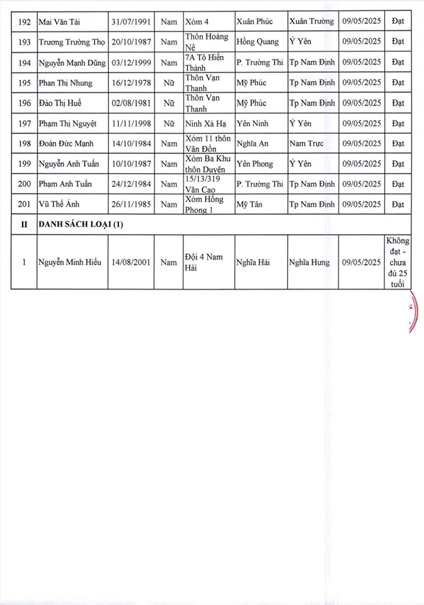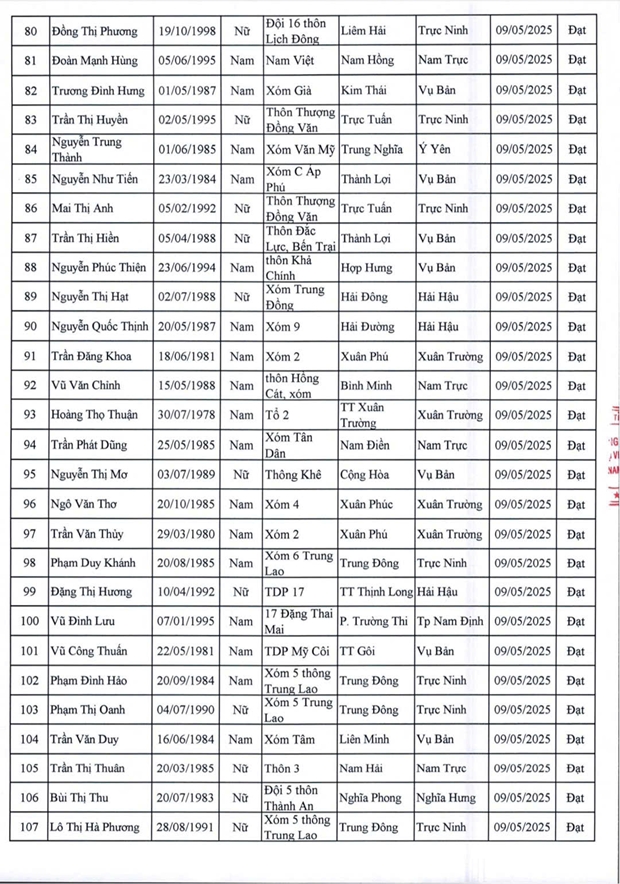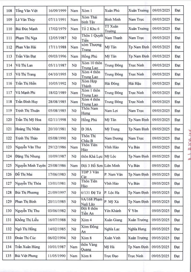 Danh sách lao động vượt qua vòng sơ tuyển phỏng vấn và thể lực ngày 9/5/2025